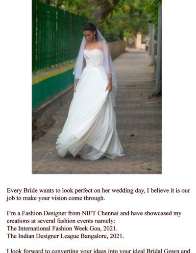 I'm a Fashion Designer from NIFT Chennai and have showcased my creations at several fashion events namely: The International Fashion Week Goa, 2021. The Indian Designer League Bangalore, 2021.